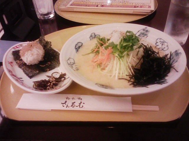 季節物だった「だったんそば」が終わってしまって、「稲庭そうめん」に替わっていた。野菜たっぷりで、とろろがかかった稲庭そうめんをいただいた。