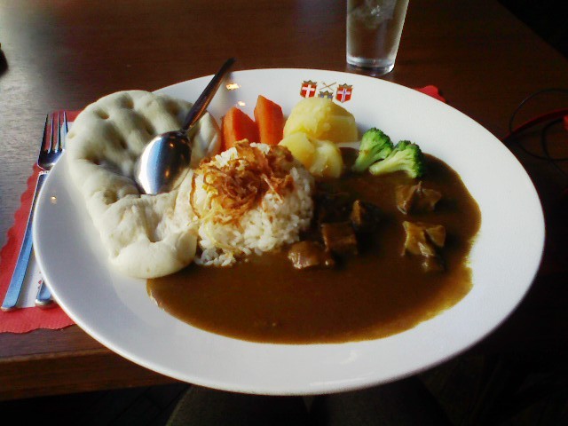 カレーは結構辛口。茹で野菜が別についていて、ごろっとしているのが自分は好きかな。