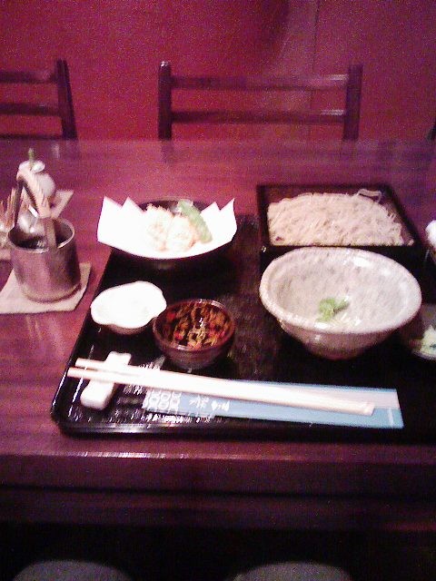 蕎麦は細打ち。新そばの香りが立っておいしかった。そうそう、天ざるにすると、大根おろしとさらしネギがつくけどワサビはついてこない。少量のワサビを蕎麦につけてつゆにつけずにすすり込む食べ方も楽しむ(つゆにつけることもあるが、基本的にワサビはつゆに溶かさない)自分にはちょっと残念。