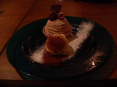 キャンティの赤ワインにケーキを合わせた。私はモンブラン。
