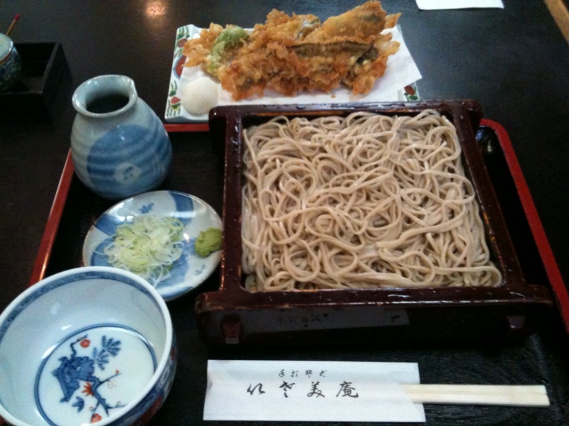 黄金色に揚がった穴子が3きれ、ししとう、茄子がそれぞれひときれ。蕎麦は鹿児島産らしい。