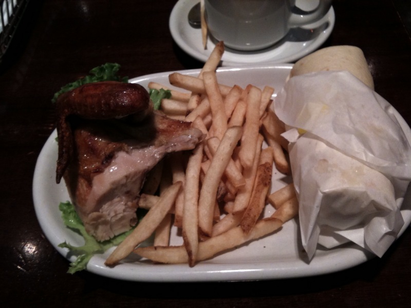 コンボランチ980円。ソフトタコス(内容を選べる)、ローストチキン1/4ピース、フライドポテト、飲み物のセット。けっこうボリュームがある。