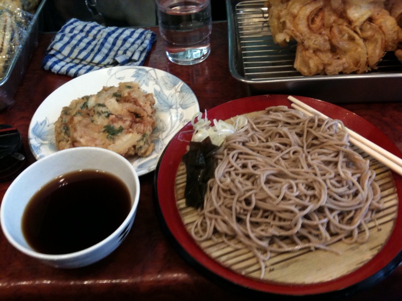 円盤状のではなく、ちゃんとしたかき揚げ。その場で揚げてくれたわけではなく、つくり置きだったけど、ほんのり温もりが。あらかじめ四つに割ってくれているので、食べやすい。