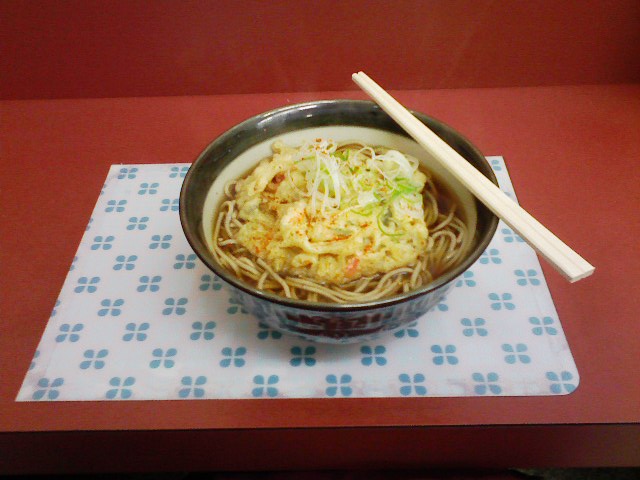 鶏蕎麦にしようとして、「手揚げ」というチラシが目に入り、ついついかき揚げの載った「天ぷらそば」に変更。